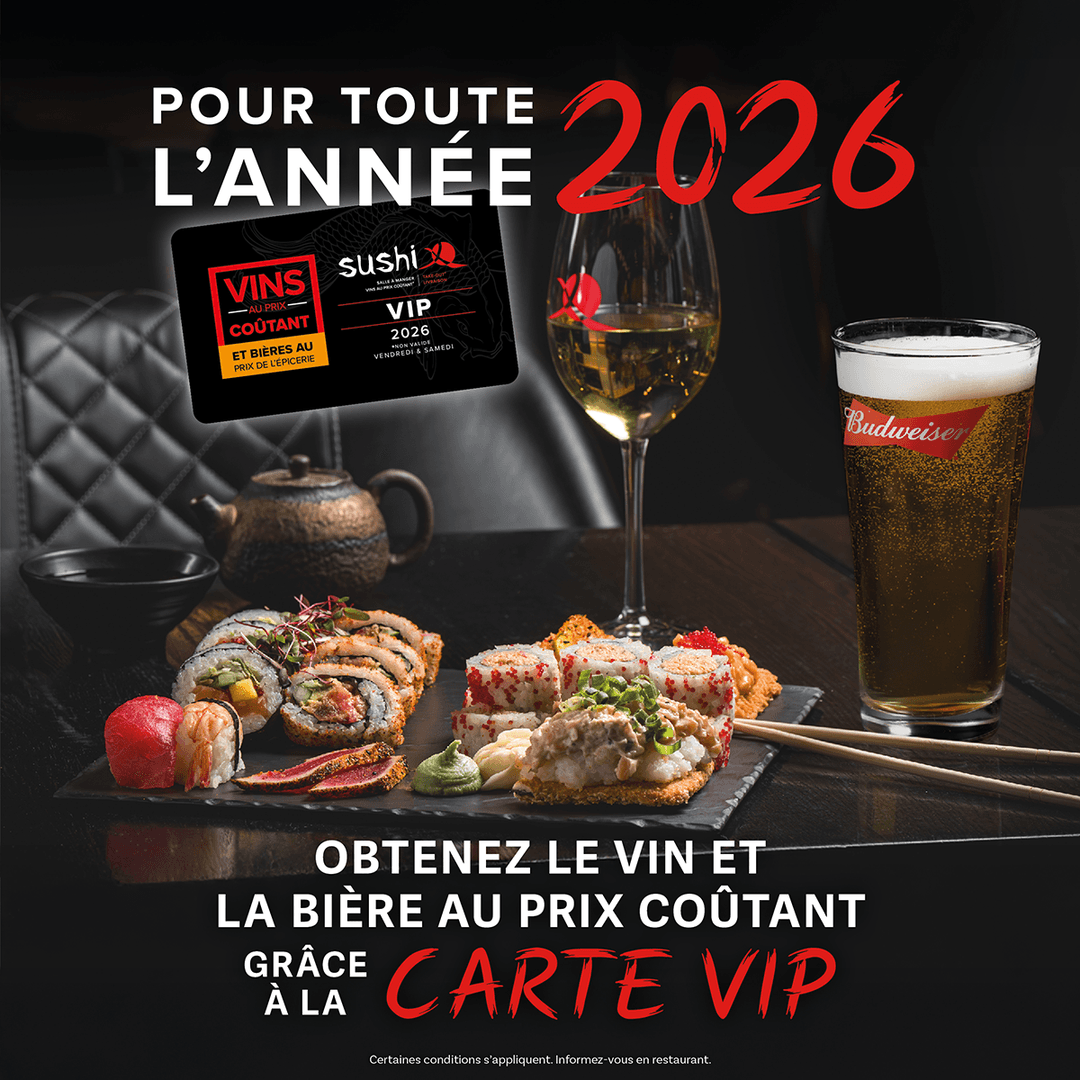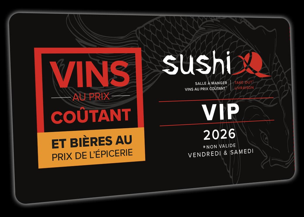 Entrez dans notre cercle privilégié avec notre carte VIP! Votre clé pour des économies Incomparables et des moments uniques dans tous les restaurants Sushi X .